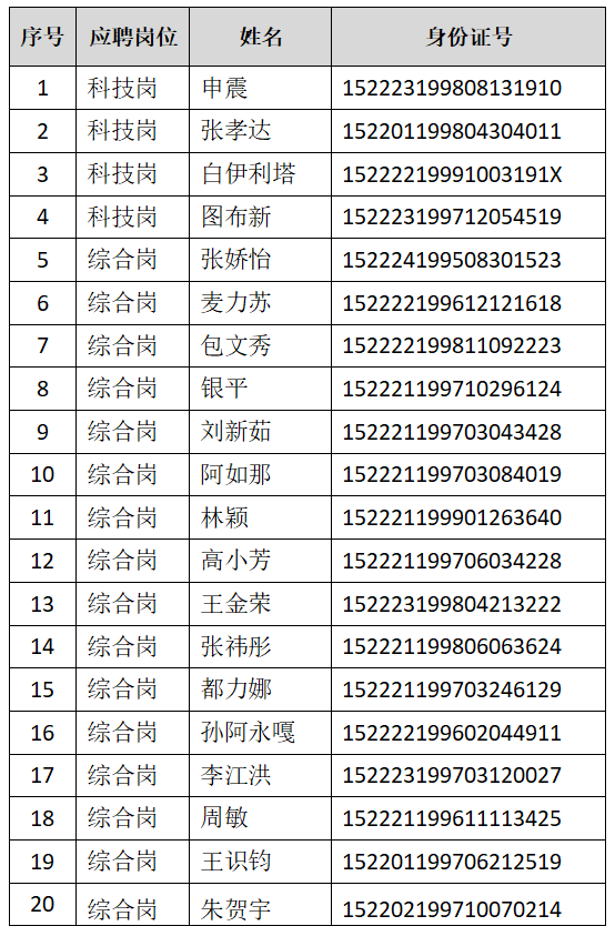 經(jīng)過(guò)現(xiàn)場(chǎng)資格初審,以下人員入圍筆試環(huán)節(jié),現(xiàn)公布如下(名單):